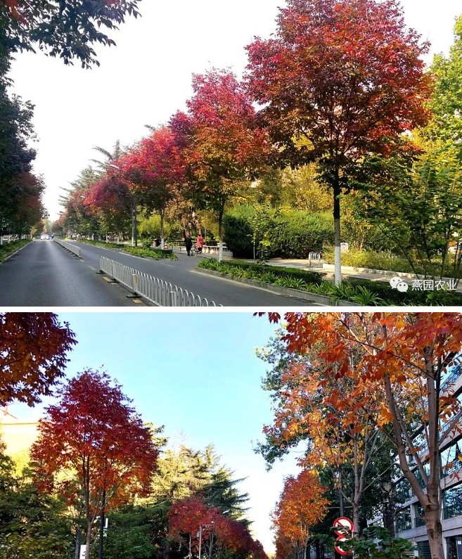 提及行道树的应用,燕园金桐力和美国红枫,可能是燕园农业老粉最先会想到的品种。毕竟它俩的综合实力的确过硬,常被推荐,也最常被应用于行道树的栽植,且景观效果那叫一个赞。