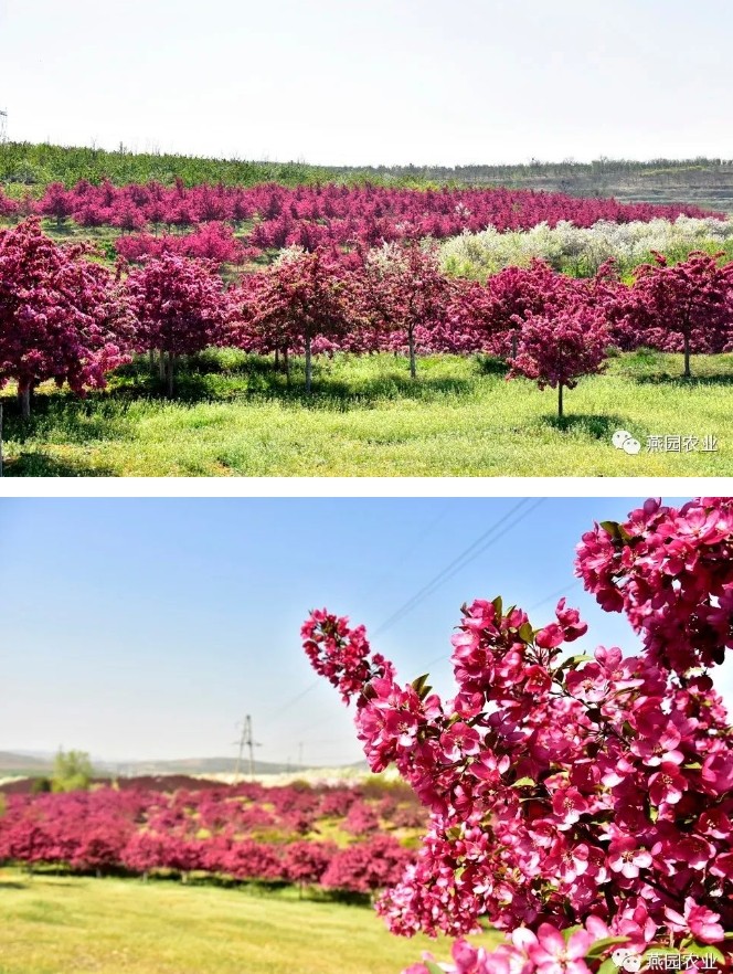北美海棠是观花、观叶、观果集一身的优异观赏类彩叶苗木。花色多样艳丽可人,硕果累累玲珑宿存,树形开阔富有张力。是自古以来便被文人雅士爱慕称赞的植株,也是现代园林景观绿化应用中的佼佼者,对于孤植、对植、列植、丛植、群植都有完美展现,是园林植物布置法的最好诠释者。