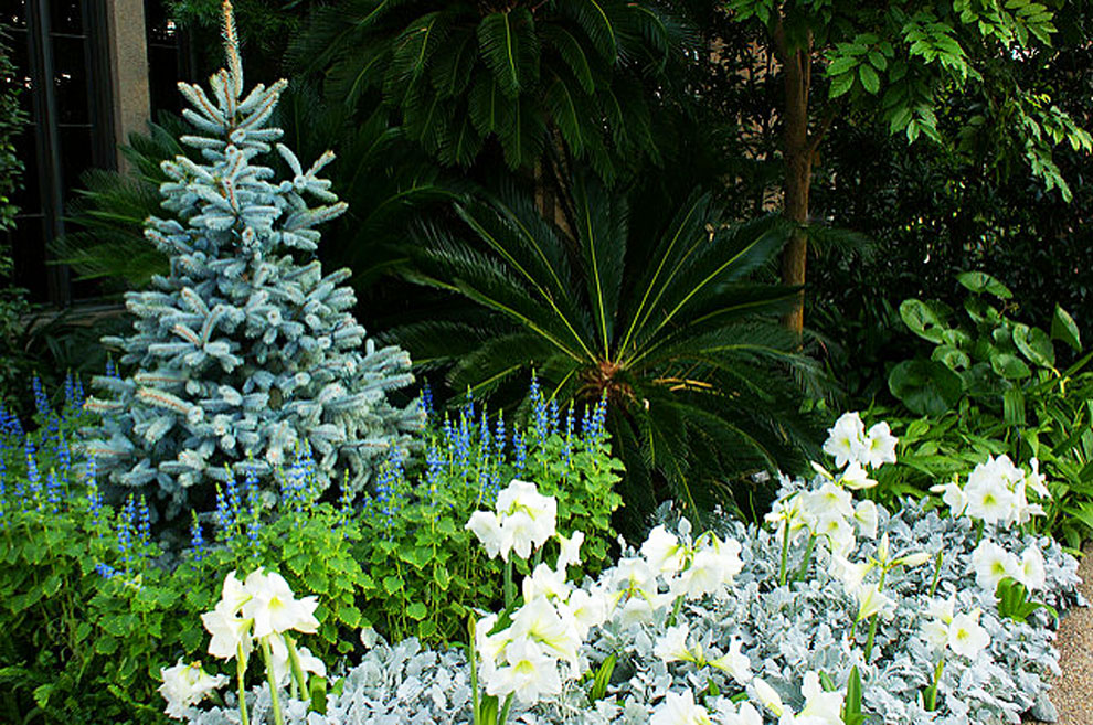 园林中色彩的搭配是一门技术活,但无论何种规格的搭配,蓝杉都是个100%正确的选项。